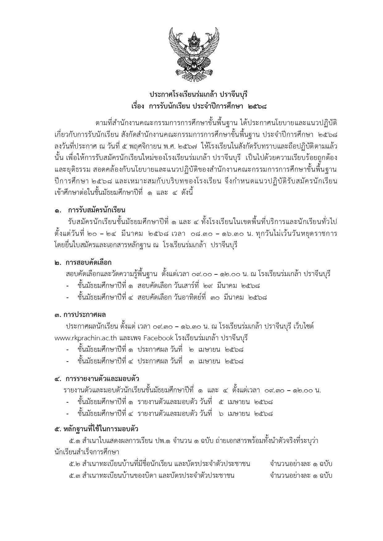 ประกาศโรงเรียนร่มเกล้า ปราจีนบุรี กุมภาพันธ์ 18, 2025กุมภาพันธ์ 18, 2025 Kanokwanlai Sonnuch ประกาศ เรื่อง การรับนักเรียน ประจำปีการศึกษา 2568 ประกาศโรงเรียนร่มเกล้า ปราจีนบุรี เรื่อง การรับนักเรียน ประจำปีการศึกษา 2568