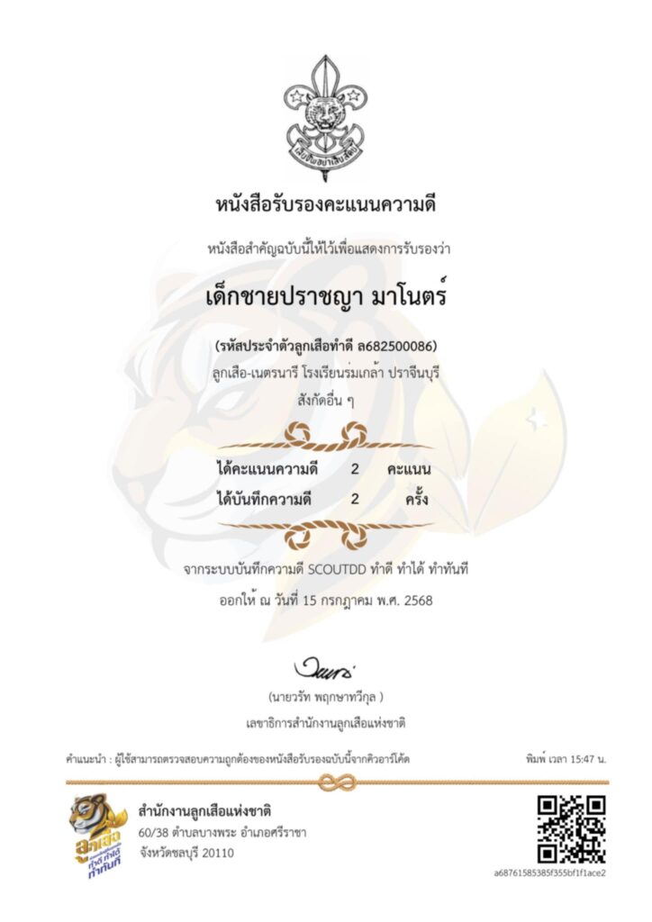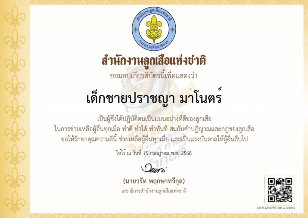 โครงการลูกเสือจิตอาสาทำดีด้วยหัวใจ ร่วมอนุรักษ์ธรรมชาติและสิ่งแวดล้อมสู่การศึกษาที่ยั่งยืน ประจำปี 2568