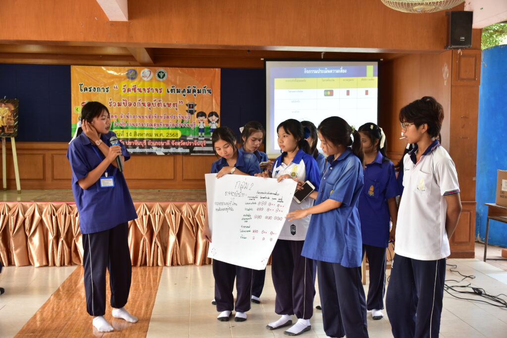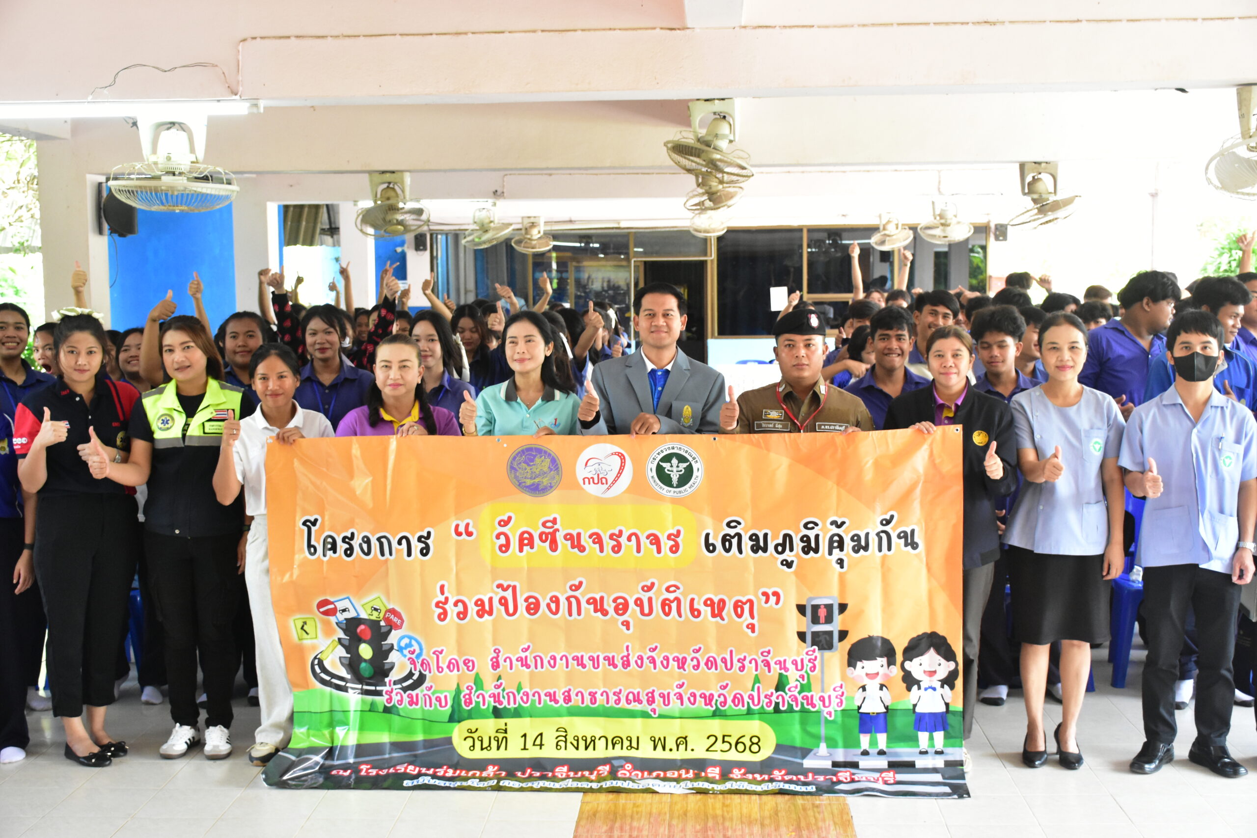 วันที่ 14 สิงหาคม 2568 โรงเรียนร่มเกล้า ปราจีนบุรี ขอขอบพระคุณสำนักงานขนส่งจังหวัดปราจีนบุรี ร่วมกับสำนักงานสาธารณสุขจังหวัดปราจีนบุรี และ สภ.วังขอนแดง ที่ได้มาให้ความรู้กับนักเรียนในโครงการ “วัคซีนจราจร เติมภูมิคุ้มกัน ร่วมป้องกันอุบัติเหตุ” โดยนางมณฑา เรืองฤทธิ์ ผู้อำนวยการโรงเรียนร่มเกล้า ปราจีนบุรี ได้มอบหมายให้นายนวพัฒน์ เก็มกาแมน รองผู้อำนวยการโรงเรียนร่มเกล้า ปราจีนบุรี เป็นประธานในพิธีเปิด ณ โรงเรียนร่มเกล้า ปราจีนบุรี อำเภอนาดี จังหวัดปราจีนบุรี