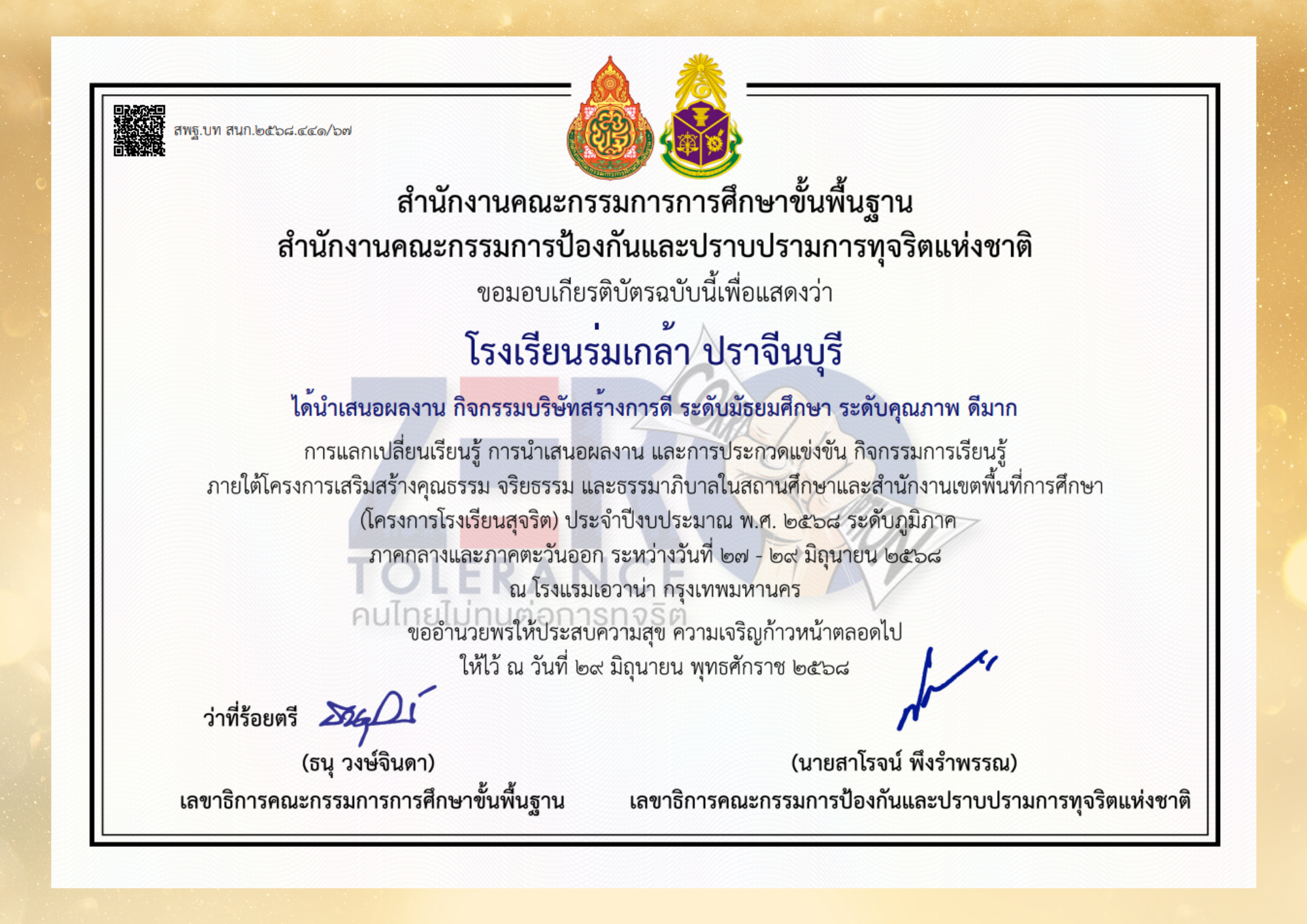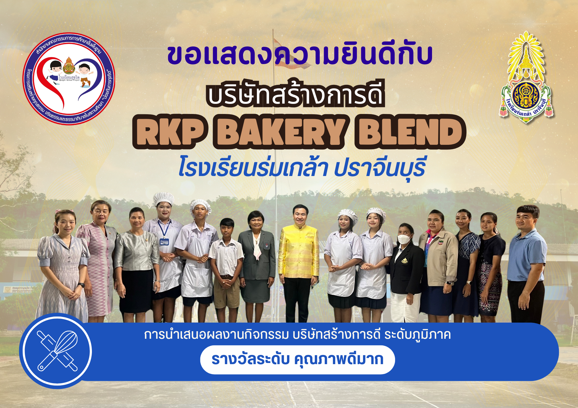 โรงเรียนร่มเกล้า ปราจีนบุรี ขอเเสดงความยินดีกับนักเรียนเเละคณะครู ที่ได้รางวัลดีระดับคุณภาพมาก ในการนำเสนอผลงาน กิจกรรมบริษัทสร้างการดี ระดับภูมิภาค เมื่อวันที่ 29 มิถุนายน 2568 ณ โรงแรมเอวาน่า กรุงเทพมหานคร