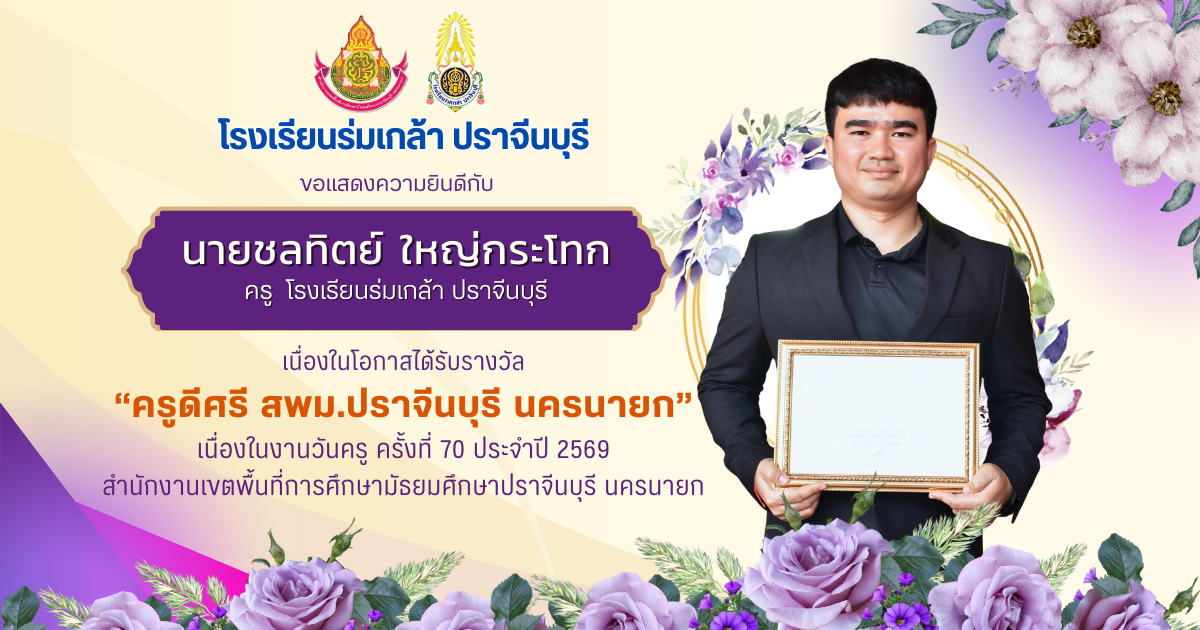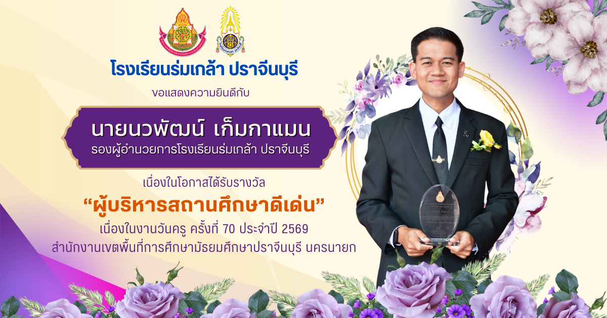 🎉💙โรงเรียนร่มเกล้า ปราจีนบุรี ขอแสดงความยินดีกับผู้บริหารและข้าราชการครูที่ได้รับรางวัลเชิดชูเกียรติ เนื่องในงานวันครู ครั้งที่ 70 ประจำปี พ.ศ. 2569 สพม.ปราจีนบุรี นครนายก ณ โรงเรียนปราจิณราษฎรอำรุง อำเภอเมือง จังหวัดปราจีนบุรี